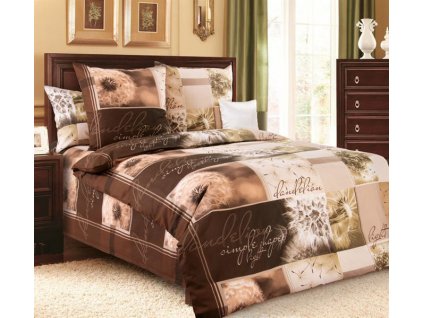Bavlněné povlečení Pampelišky hnědé je vyrobené ze 100% bavlny. Jedná se o český výrobek. Rozměry polštáře - 70x90cm, rozměry cíchy - 140x200cm.